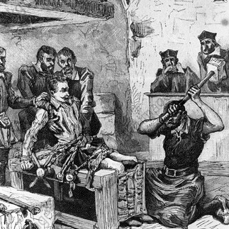 Heureusement, la torture des brodequins n’est plus guère pratiquée aujourd’hui. Utilisée en France jusqu'en 1780 pour soutirer des aveux, voire pire, cette forme de torture était conçue pour broyer les jambes : les blessures étaient souvent si sévères que les os éclataient. L'accusé était assis sur un fauteuil massif. Deux planches étroites et solides étaient alors fermement attachées de part et d'autre de chaque jambe, et une corde solide liait étroitement les quatre planches entre elles. Des coins étaient ensuite enfoncés à coups de marteau entre les deux planches centrales, ce qui, en resserrant les planches autour des jambes de l'accusé, leur imprimait une force cruelle (Wikipedia).